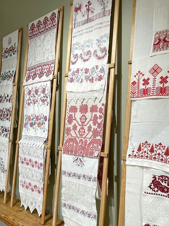 Wetterhoffin kevään näyttely Kukkilintu, tuo esille kirjottua käsityöperinnettä. Näyttelyssä on käspaikkoja, merkkausliinoja ja muita kirjontatöitä.