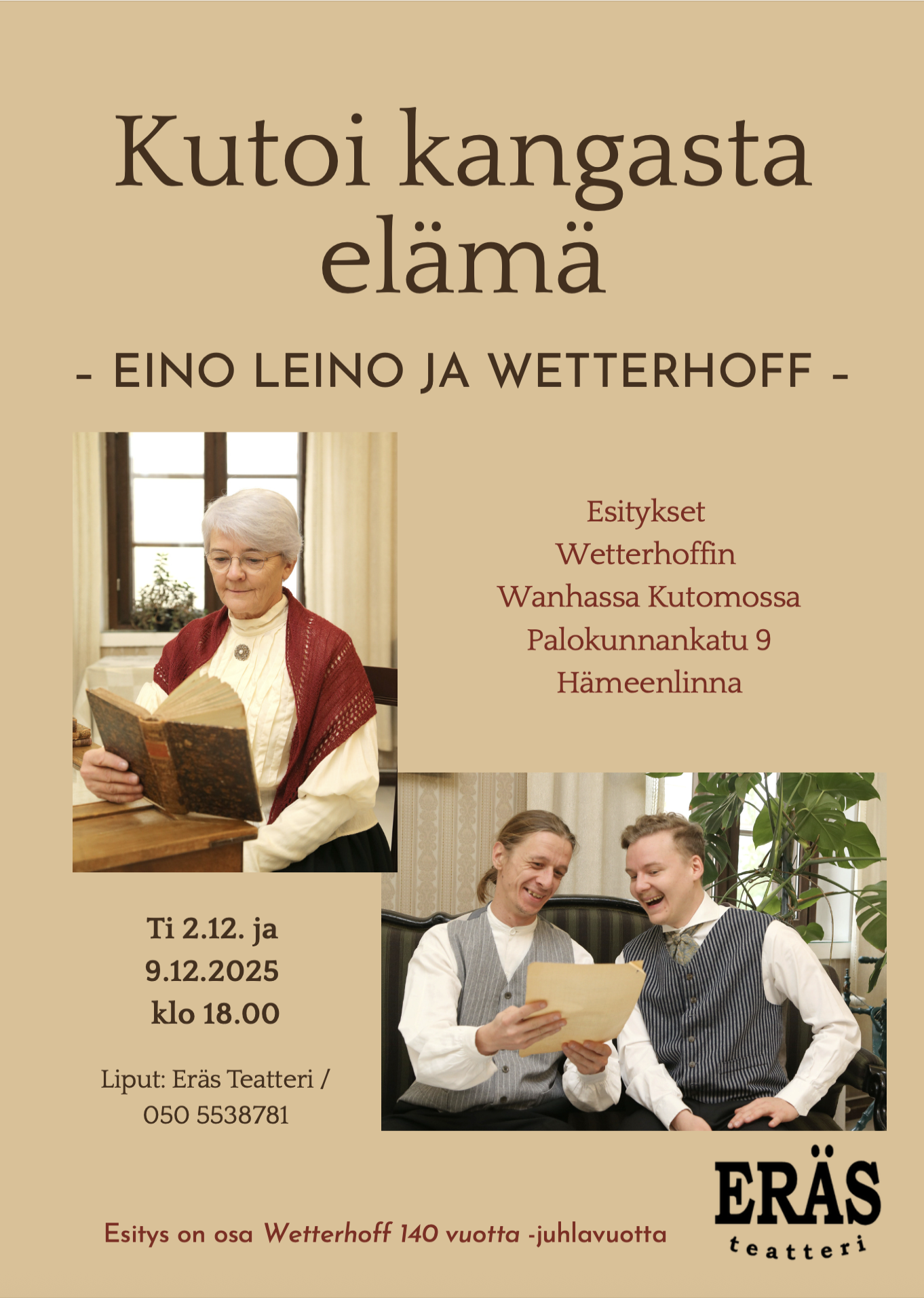Eräs Teatterin esitys on yksi Wetterhoff 140 vuotta -juhlavuoden tapahtumista. Historiallisten lähteiden pohjalta sen ovat koonneet ja käsikirjoittaneet Mervi Friman, Marja Räikkönen ja Liisa Virtanen.